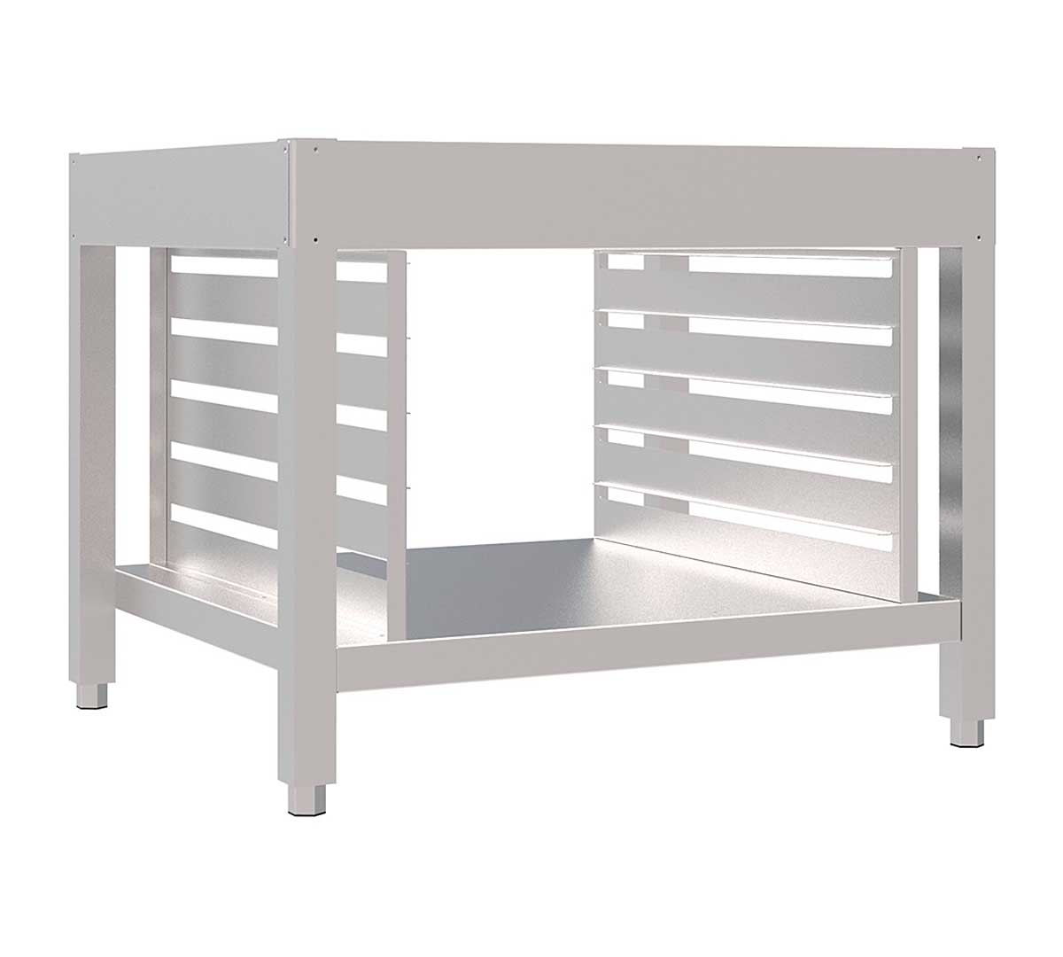 El Soporte con 5 Guías Bake de Mychef es una estructura apta para colocar individualmente los hornos Mychef. Sus 8 ranuras de inserción permiten almacenar bandejas GN 1/1 ya sean limpias, preparadas o usadas.