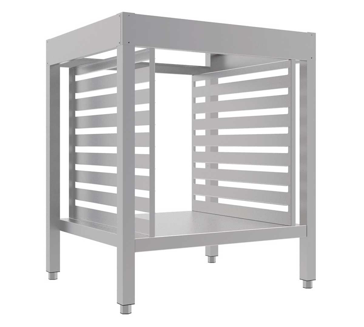 El Soporte con 8 Guías Bake de Mychef es una estructura apta para colocar individualmente los hornos Mychef. Sus 8 ranuras de inserción permiten almacenar bandejas GN 1/1 ya sean limpias, preparadas o usadas.