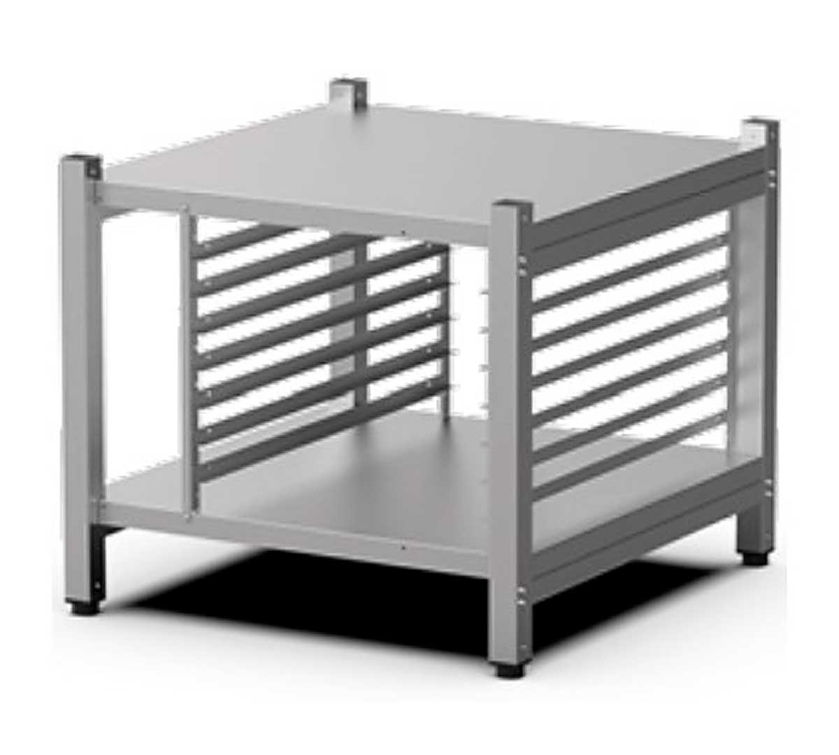 Construido con materiales de alta calidad, este soporte permite una colocación ergonómica del horno a la altura ideal, facilitando el acceso y la gestión de las bandejas con seguridad y eficiencia. Su diseño robusto y su capacidad para almacenar hasta 7 bandejas GN 1/1 lo hacen indispensable en cualquier cocina profesional.