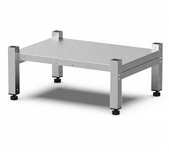 Stand bajo para la solución Double Stack. Permite utilizar Smart.Drain solo para el horno inferior en una columna de hornos superpuestos. Tiene unas medidas de 85,2 x 71,3 x 30,5 cm. Es necesaria la compra de Carro Smart.Drain de Unox.